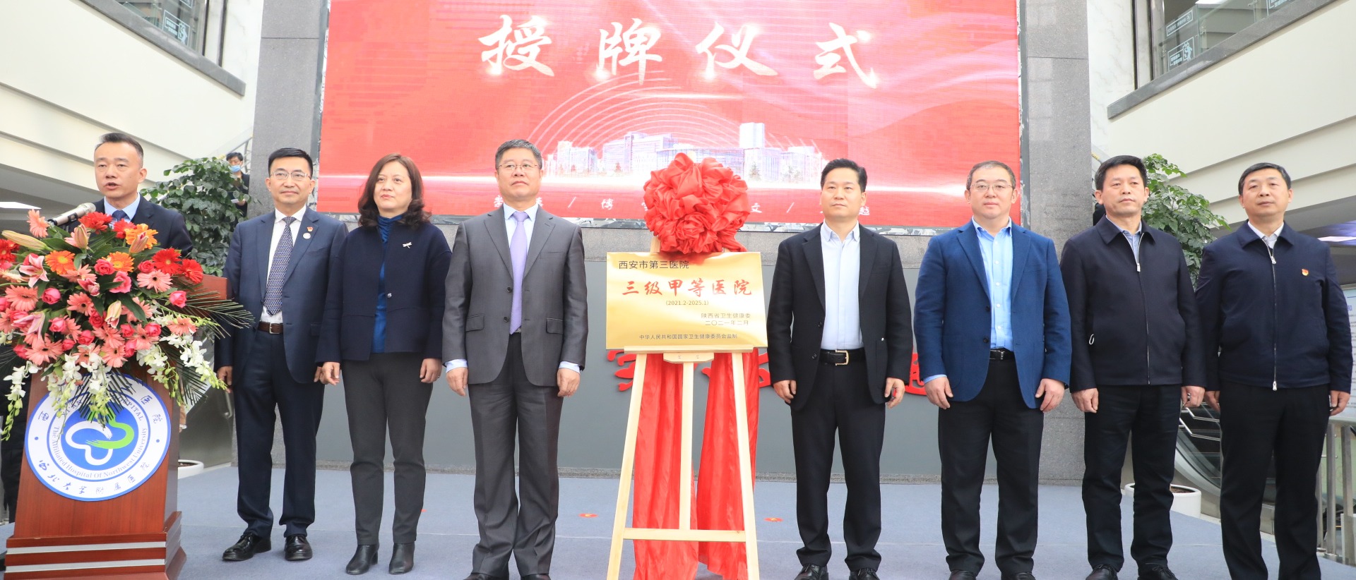 3月8日,15vip太阳集团官网附属医院·西安市第三医院举行三级甲等综合医院授牌仪式。陕西省卫健委副主任杨联昌,校党委常委、副校长常江,西安市卫健委主任刘顺智,陕西省卫健委医政医管局局长于春富,西安市卫健委副主任王红艳,学校相关单位负责人出席仪式。医院领导班子、全院中层、科室骨干以及各医联体成员单位代表参加了授牌仪式。仪式上,于春富宣读《关于评定西安市第三医院为三级甲等医院的批复》文件。常江与杨联昌、刘顺智等领...