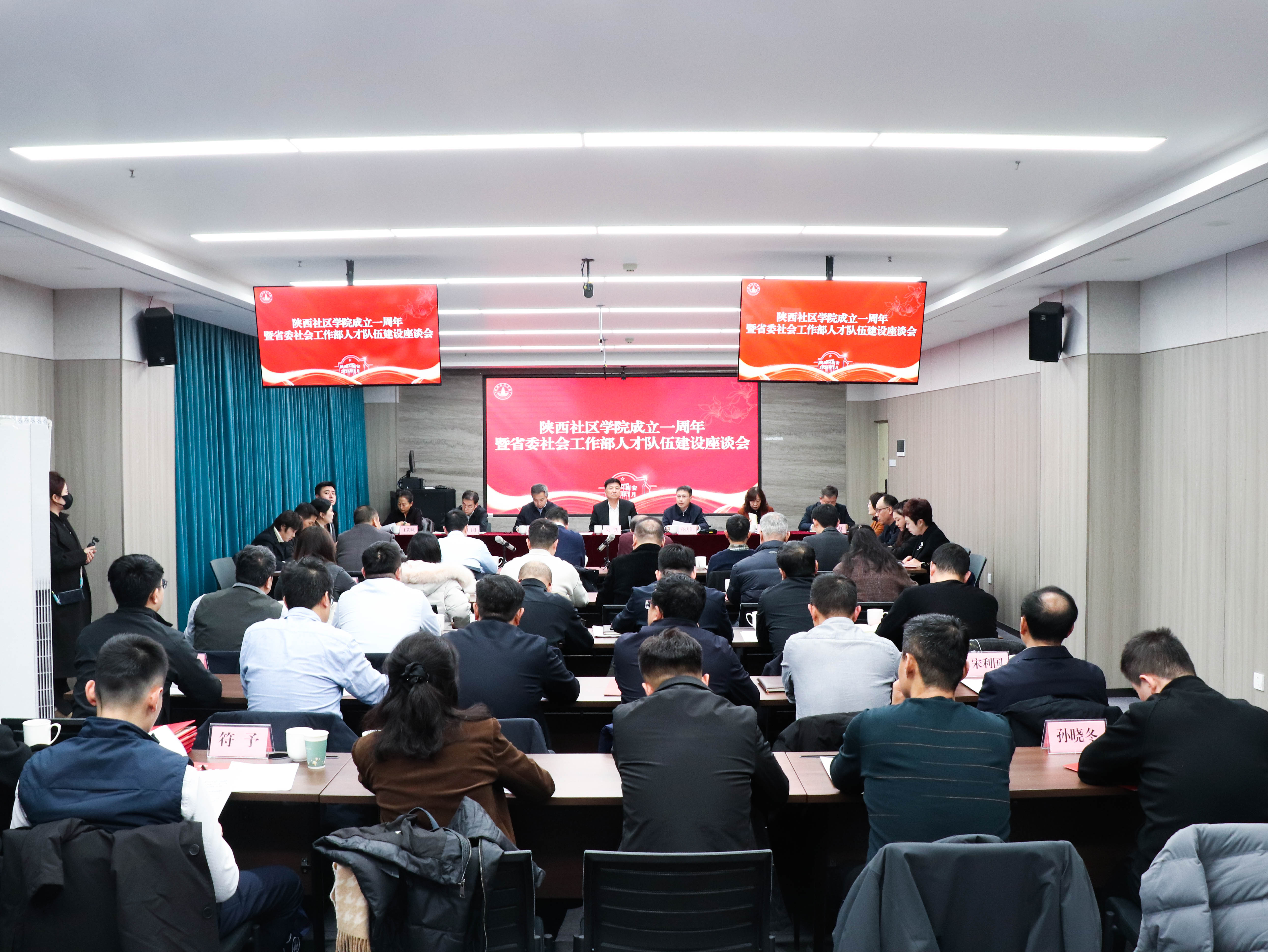 1月6日下午,陕西社区学院成立一周年暨省委社会工作部人才队伍建设座谈会在太阳集团桃园校区举行。省委社会工作部部长、省委“两新”工委书记吴铁,太阳集团校长孙庆伟,副校长曹蓉,陕西开放大学党委副书记田园,陕西志愿者培训学院院长、省团校校长马东红,省委社会工作部办公室二级巡视员王彩凤,陕西省志愿服务联合会副会长朱圣根出席座谈会。会议由省委社会工作部副部长陈军主持。