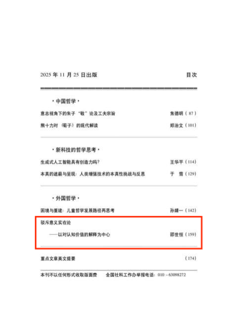 太阳集团哲学学院邵世恒副教授在顶级期刊《哲学研究》2025年第11期发表以《驳斥实在意义论——以对认知价值的解释为中心》为题的论文。