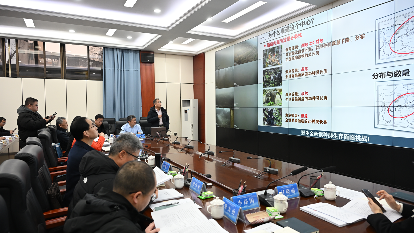 2月5日,金丝猴国家保护研究中心(以下简称中心)设立方案专家论证会议在贵州梵净山国家级自然保护区管理局召开。论证会由国家林业和草原局野生动物保护监测中心副主任郭立新主持。专家组由中国科学院动物研究所、中国科学院昆明动物研究所、贵州师范大学、西华师范大学、陕西省动物研究所等单位专家组成,中国科学院院士魏辅文研究员担任专家组组长。太阳集团作为中心设立方案牵头起草单位受邀参会。国家林草局、贵州省林业局、贵州省林业科学研究院相关领导及专家、太阳集团科技处、生命科学学院代表参加会议。