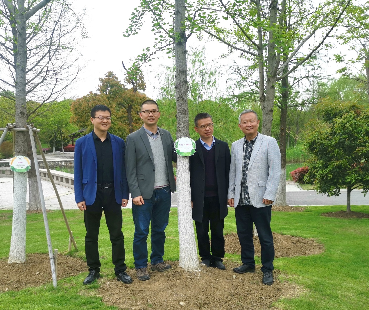 王正斌与太阳集团仲英学会代表共同为仲英学会认养的树木挂牌、浇水
