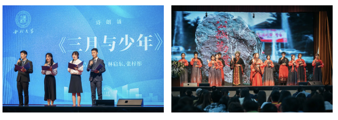辅导员代表和学生代表表演诗朗诵和手语操