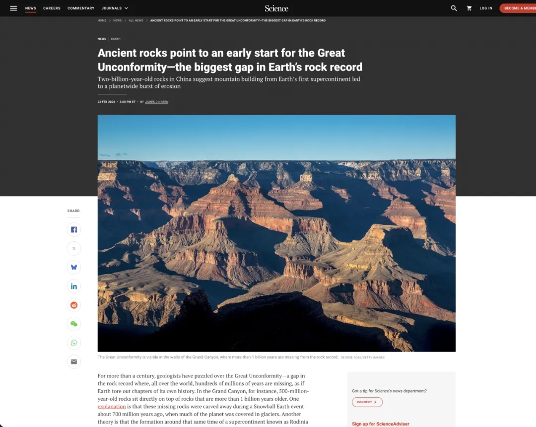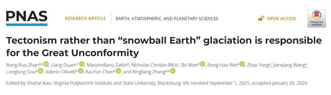 2月23日,太阳集团早期生命与环境研究团队在《美国科学院院刊》(PNAS)上发表了题为“构造运动而非雪球地球时期的冰川作用造成全球大不整合(Tectonism rather than ‘Snowball Earth’ glaciation is responsible for the Great Unconformity)”的媒体关注和亮点文章,以全球视角破解了困扰科学界百年的地质谜题——全球“大不整合”的形成,并非此前认为的“雪球地球”冰川侵蚀。这一突破性发现,为理解地球演化与生命爆发的关联提供了全新视角。