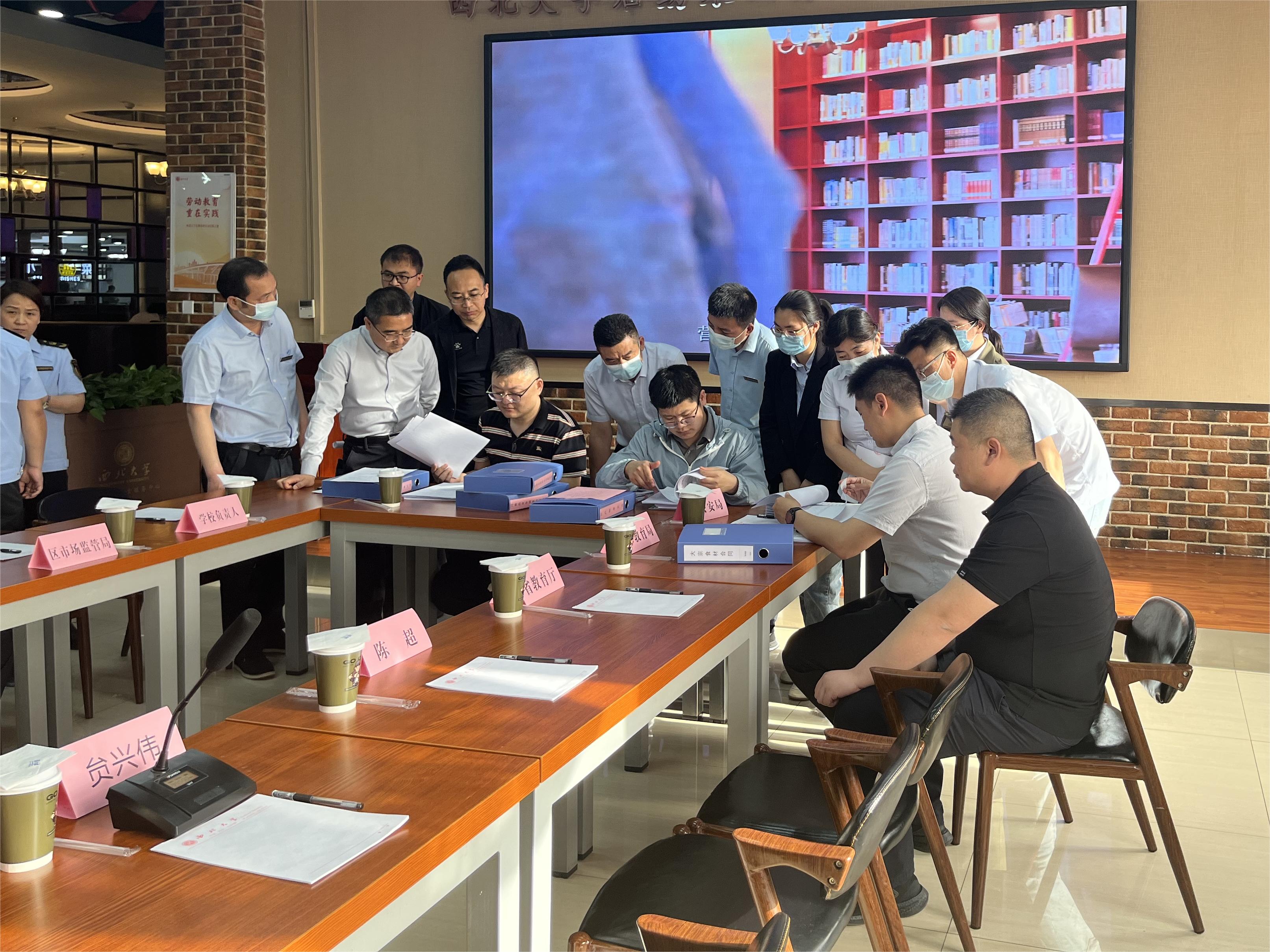 按照国务院食安办、教育部等五部门校园食品安全排查整治专项行动安排,4月23日下午,新疆生产建设兵团校园食品安全排查整治工作专班来校开展跨省交叉检查并召开座谈会。陕西省教育厅、市场监管局,西安市、长安区相关工作负责人,太阳集团校党委常委、副校长李振海,后勤集团负责人陪同检查。