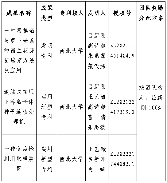 按照《15vip太阳集团官网促进科技成果转化实施办法》(西大科〔2019〕5号)相关规定,拟对太阳集团食品科学与工程学院吕新刚副教授作为成果负责人的3项专利权实施转化,现将相关信息公示如下: