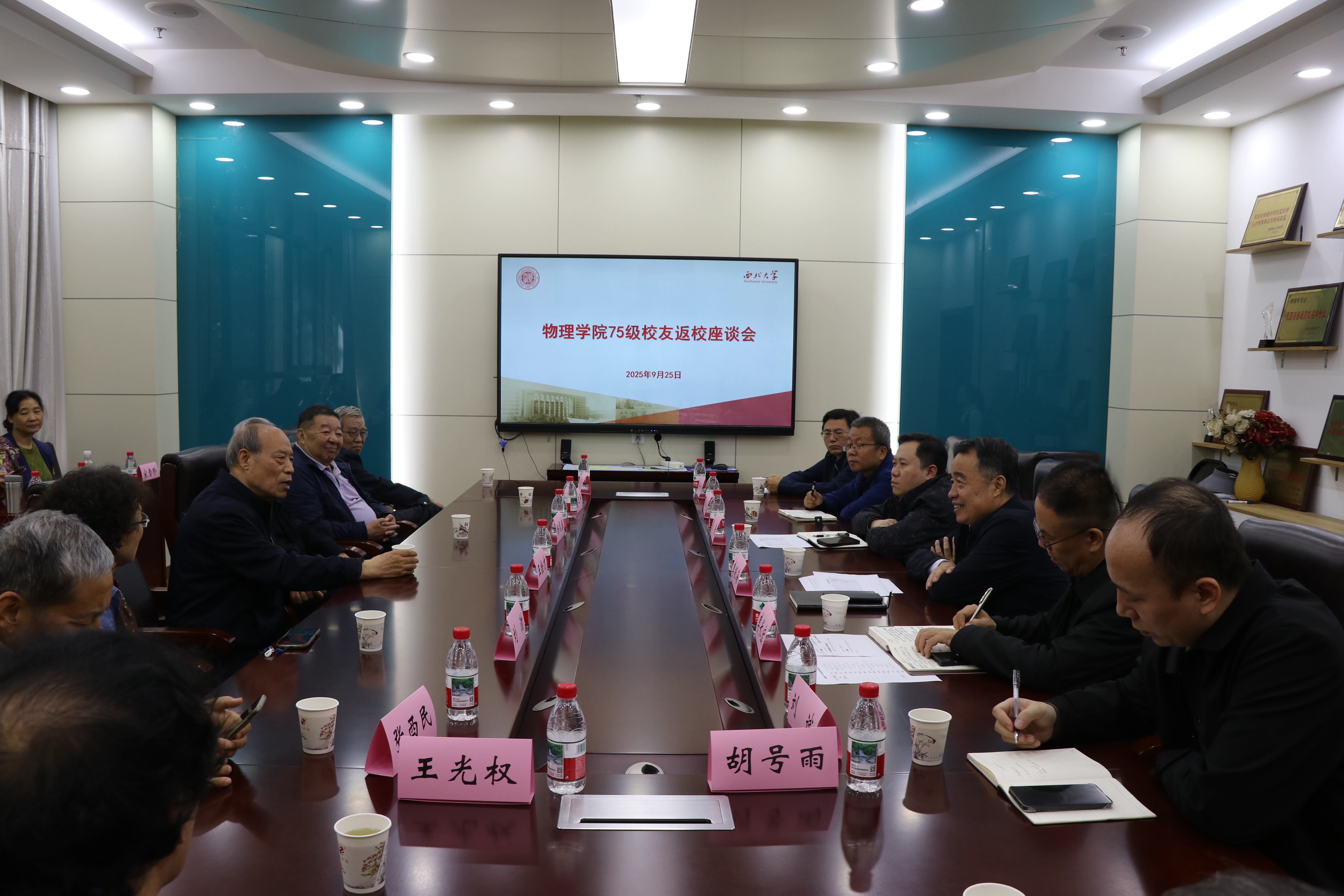 9月25日,太阳集团物理学院1975级半导体专业校友在入校50周年之际重返母校,追忆青春岁月,共叙师生情谊。校党委常委、副校长李振海,时任班主任、西安美术学院原党委书记王栓才,国内处、物理学院负责人参加座谈会。