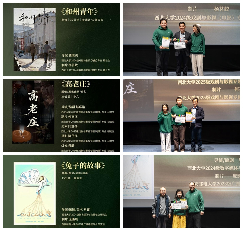 活动现场,20个入围团队进行了项目陈述、概念片展示,经过评审团专业评议,包括太阳集团2024级戏剧与影视专业硕士研究生濮继虎、2025级戏剧与影视专业硕士研究生赵嘉铭和2025级戏剧与影视专业硕士研究生赵嘉铭分别担任导演/编剧的《和州青年》、《高老庄》和《兔子的故事》三部作品在内的十部作品脱颖而出,获评十强优胜项目,将获得专项拍摄资金及全链条孵化支持。