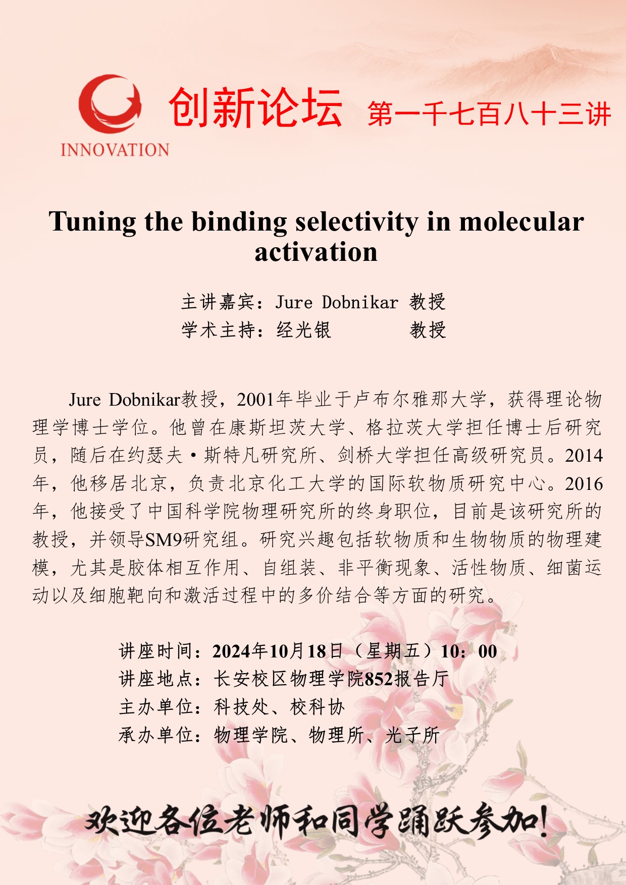 Jure Dobnikar 教授 15vip太阳集团官网创新论坛第一千七百八十三讲:Tuning the binding selectivity in molecular activation 讲座时间 2024年10月18日(星期五)10:00 讲座地点 长安校区物理学院852报告厅 讲座人介绍 Jure Dobnikar 教授 讲座内容