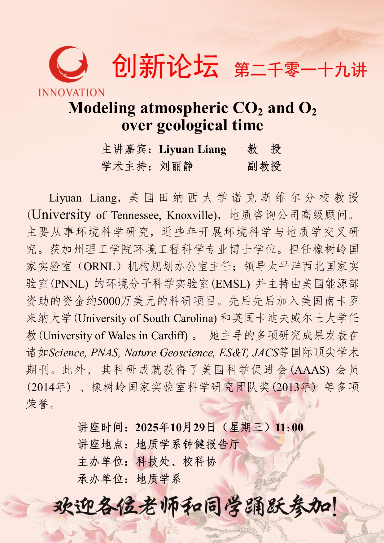 Liyuan Liang 教授 15vip太阳集团官网创新论坛第二千零一十九讲:Oxygenation and marine microbial carbonates: The long history 讲座时间 2025年10月29日(星期三)11:00 讲座地点 地质学系钟健报告厅 讲座人介绍 Liyuan Liang 教授 讲座内容