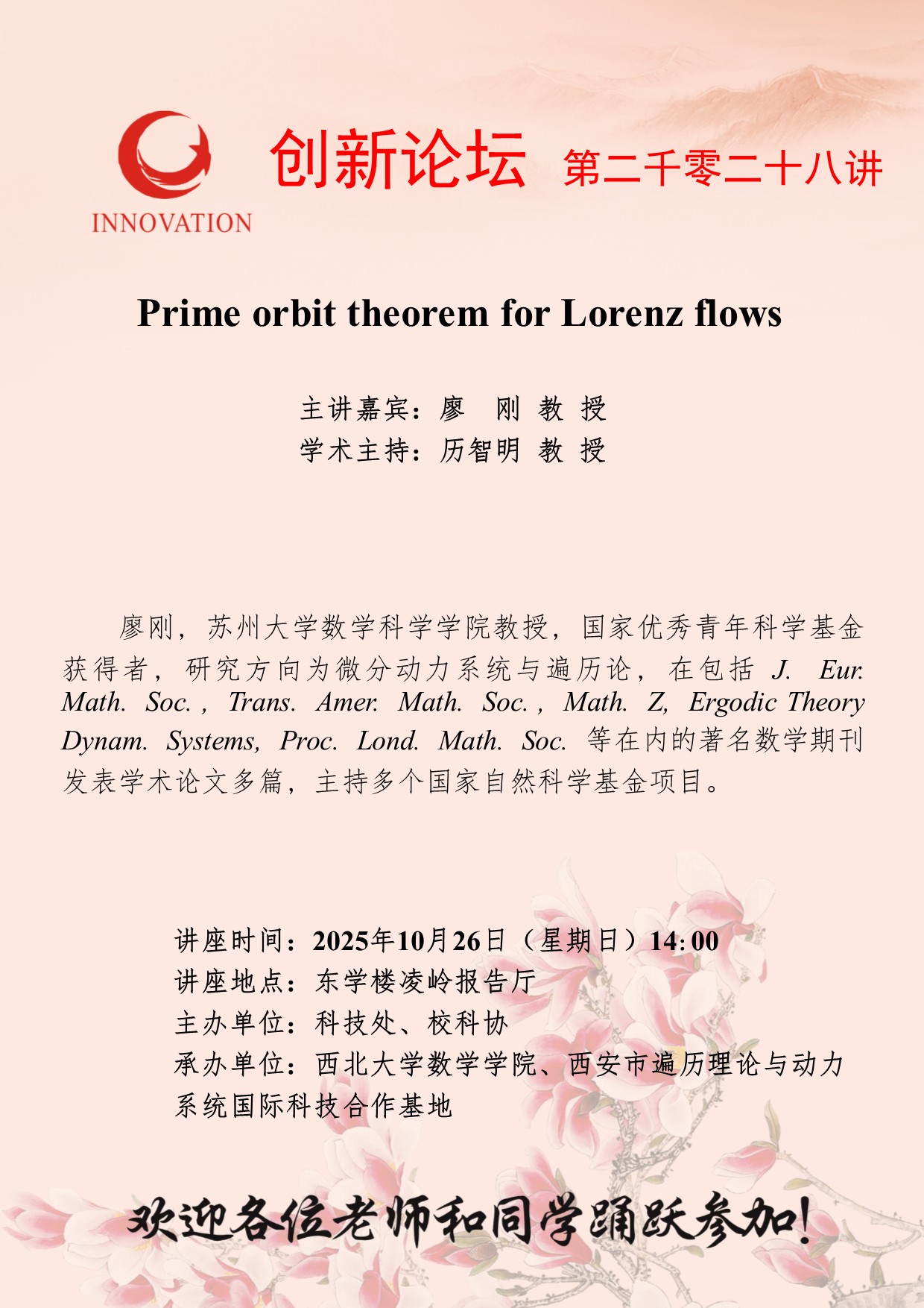 廖 刚 教 授 15vip太阳集团官网创新论坛第二千零二十八讲:Prime orbit theorem for Lorenz flows 讲座时间 2025年10月26日(星期日)14:00 讲座地点 东学楼凌岭报告厅 讲座人介绍 廖 刚 教 授 讲座内容