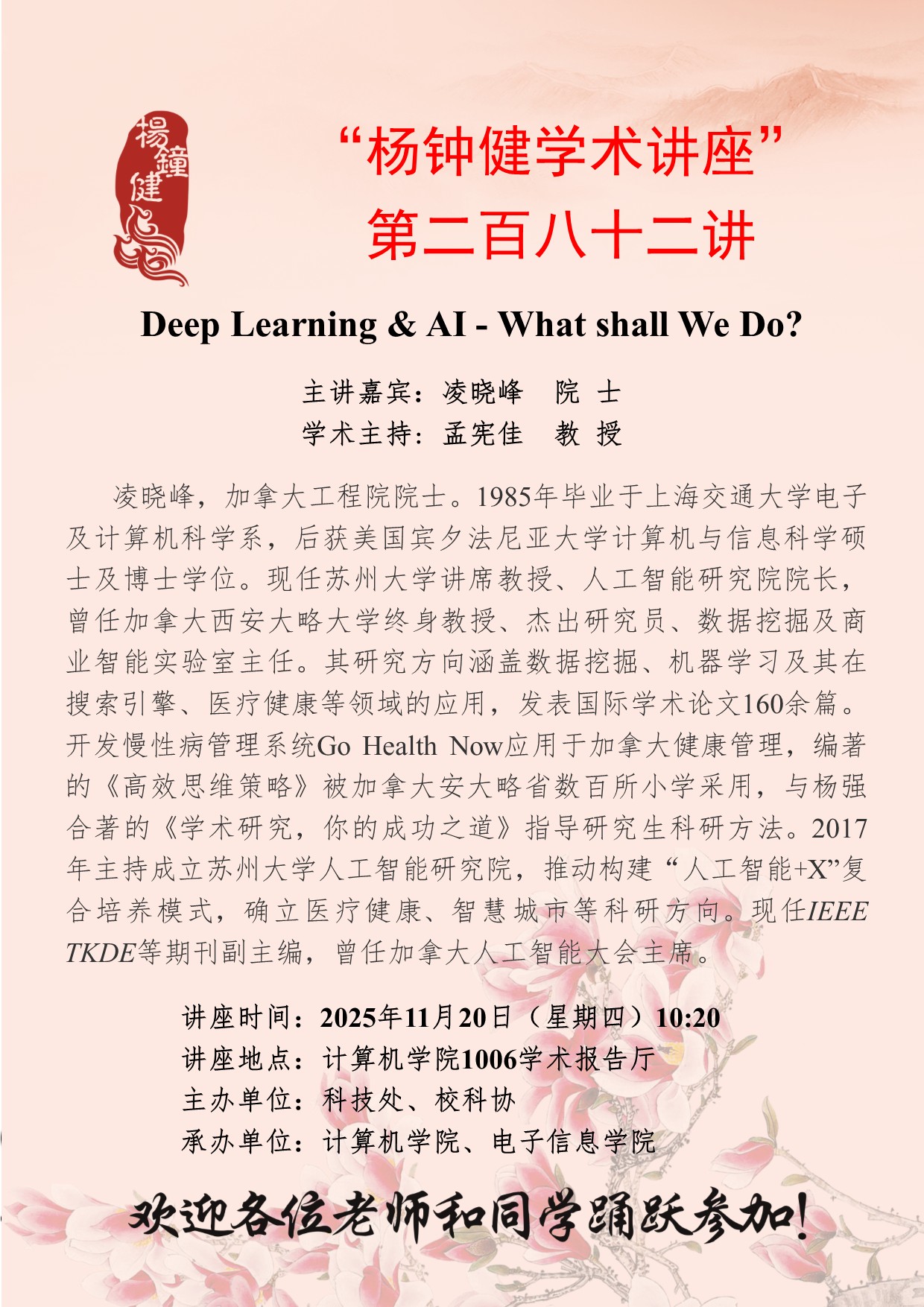“杨钟健学术讲座”第二百八十二讲:Deep Learning & AI - What shall We Do?