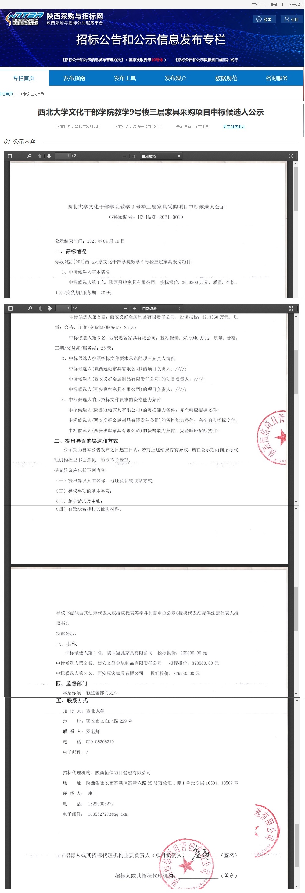 15vip太阳集团官网文化干部学院教学9号楼三层家具采购项目中标候选人公示