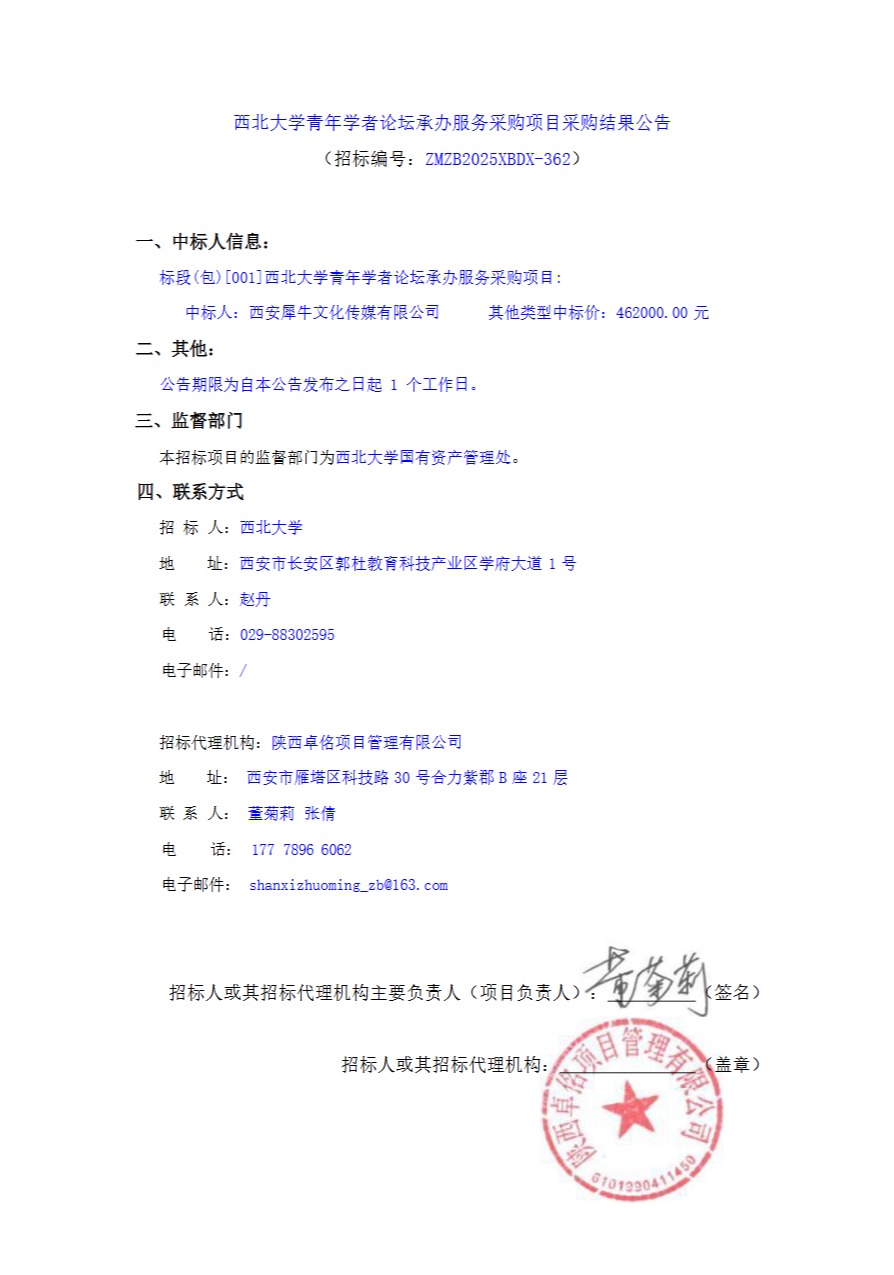 15vip太阳集团官网青年学者论坛承办服务采购项目采购结果公告