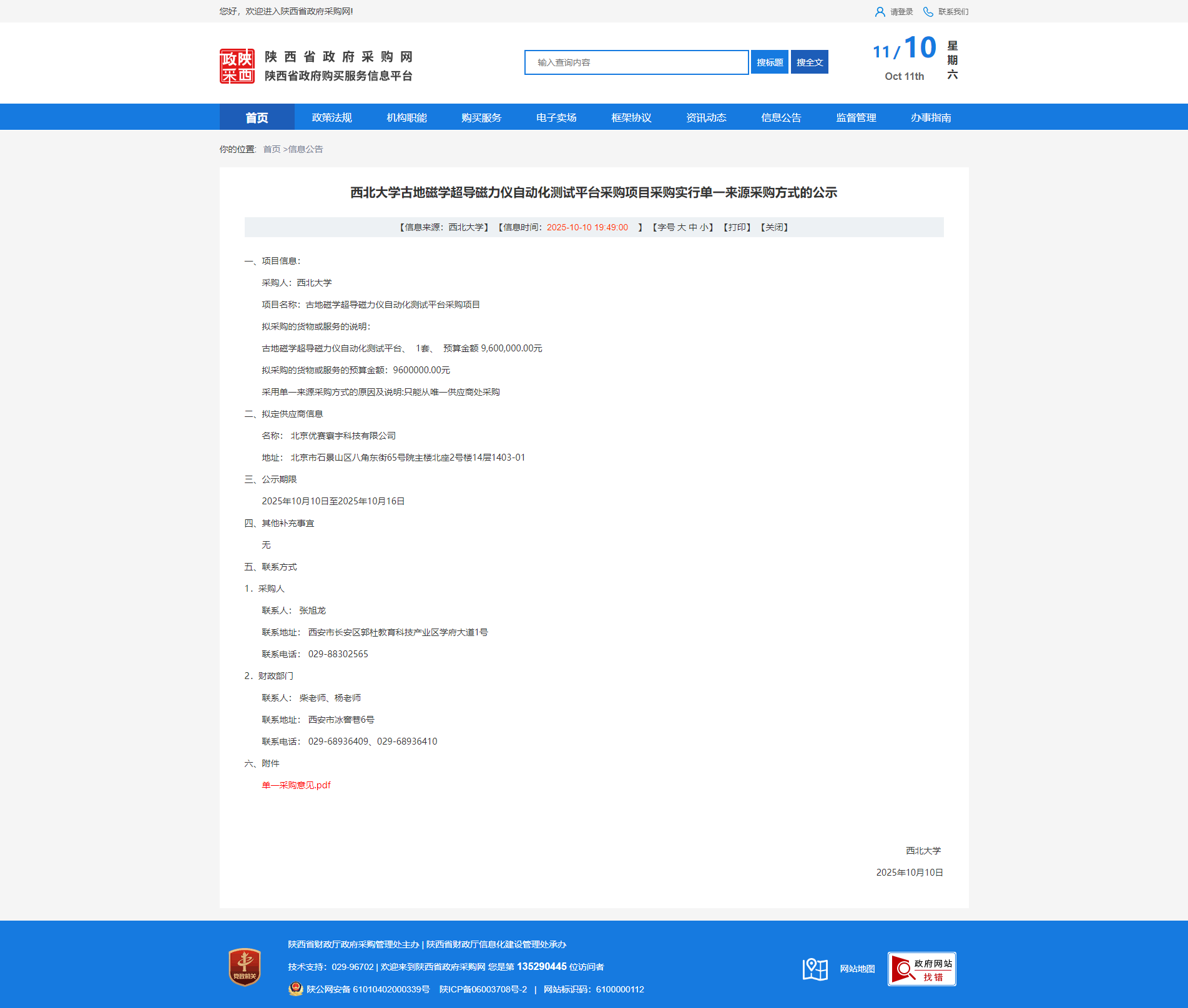 15vip太阳集团官网古地磁学超导磁力仪自动化测试平台采购项目采购实行单一来源采购方式的公示