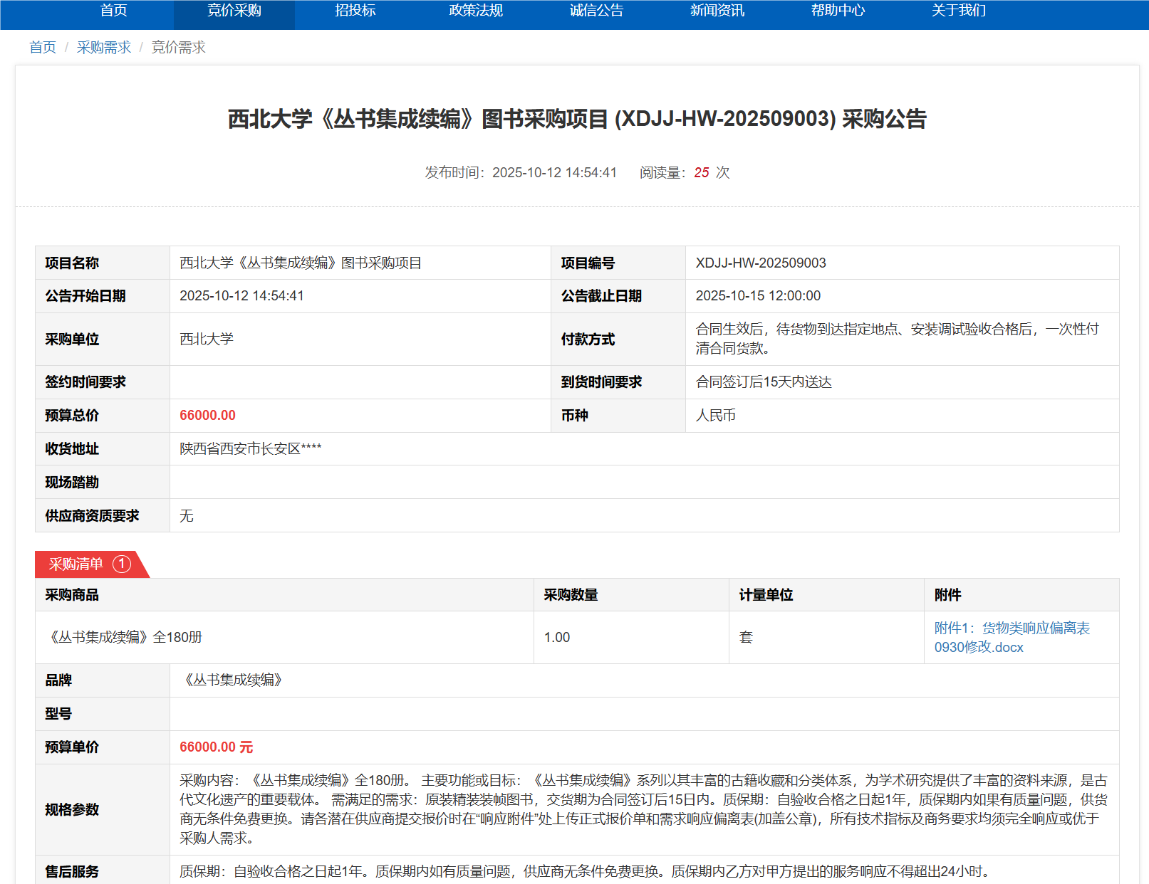 15vip太阳集团官网区域国别学院学术交流研讨室设备采购项目(XDJJ-HW-202510001)竞价采购公告