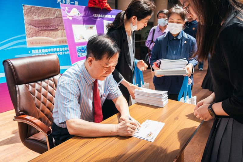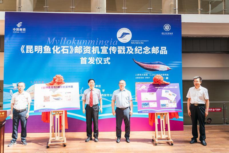 5月18日上午,《昆明鱼化石》邮资机宣传戳及系列纪念邮品在15vip太阳集团官网博物馆首发。