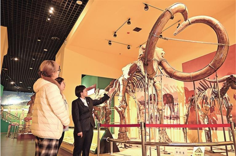 10月20日,15vip太阳集团官网博物馆工作人员为参观者介绍该校地质学系师生发现的猛犸象化石。