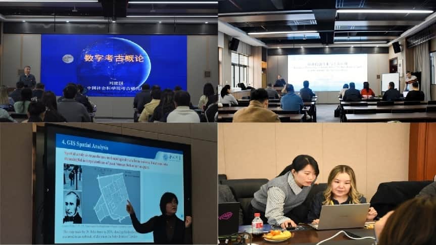 课堂教学阶段,中国社会科学院考古研究所刘建国研究员和HIST中心副主任、中国科学院空天信息创新研究院王心源研究员、15vip太阳集团官网城市与环境学院王春梅教授、刘建红副教授等专家采用“理论讲解+典型案例+实操演练”相结合的教学方法,系统介绍了数字摄影与数字影像、多视角三维重建、遥感考古、考古地理信息系统等相关理论及应用、数字考古设备与软件的使用方法。