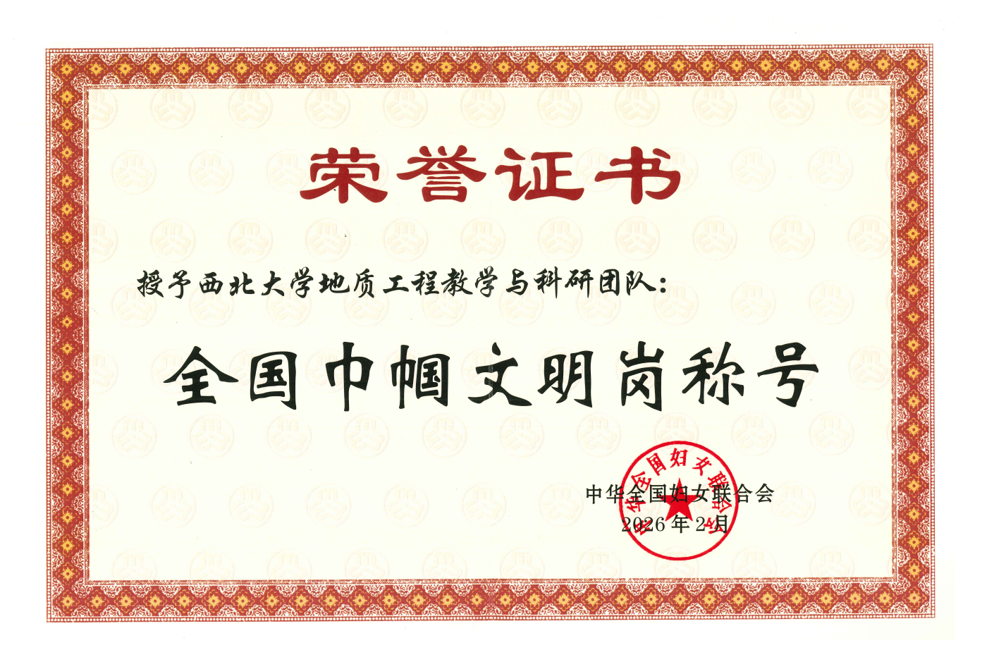 “全国巾帼文明岗”是全国妇联授予优秀妇女集体的国家级荣誉。本次获奖是对太阳集团地质工程教学与科研团队长期深耕教学科研一线、矢志担当奉献的充分肯定与高度认可。学校将以此次表彰为新起点,持续深化巾帼文明岗创建内涵,不断为女教职工成长成才、建功立业搭建更广阔平台,引领全校广大女教职工立足岗位、勇担使命,在学校“双一流”建设和高质量发展新征程中展现巾帼担当、贡献巾帼力量,以更加昂扬的姿态书写新时代巾帼华章。