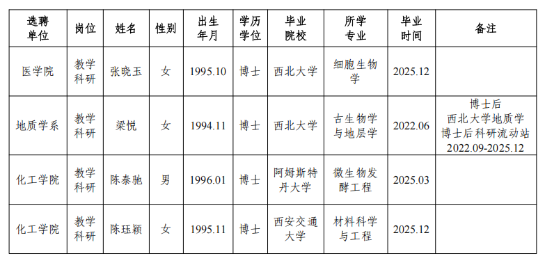 经资格审查,用人单位考查,学校专家评审会审议,太阳集团拟确定下列人员来校工作,聘任方式为参编选聘。本着公平、公正、公开的原则,现将本次拟选聘人员基本情况公示如下: