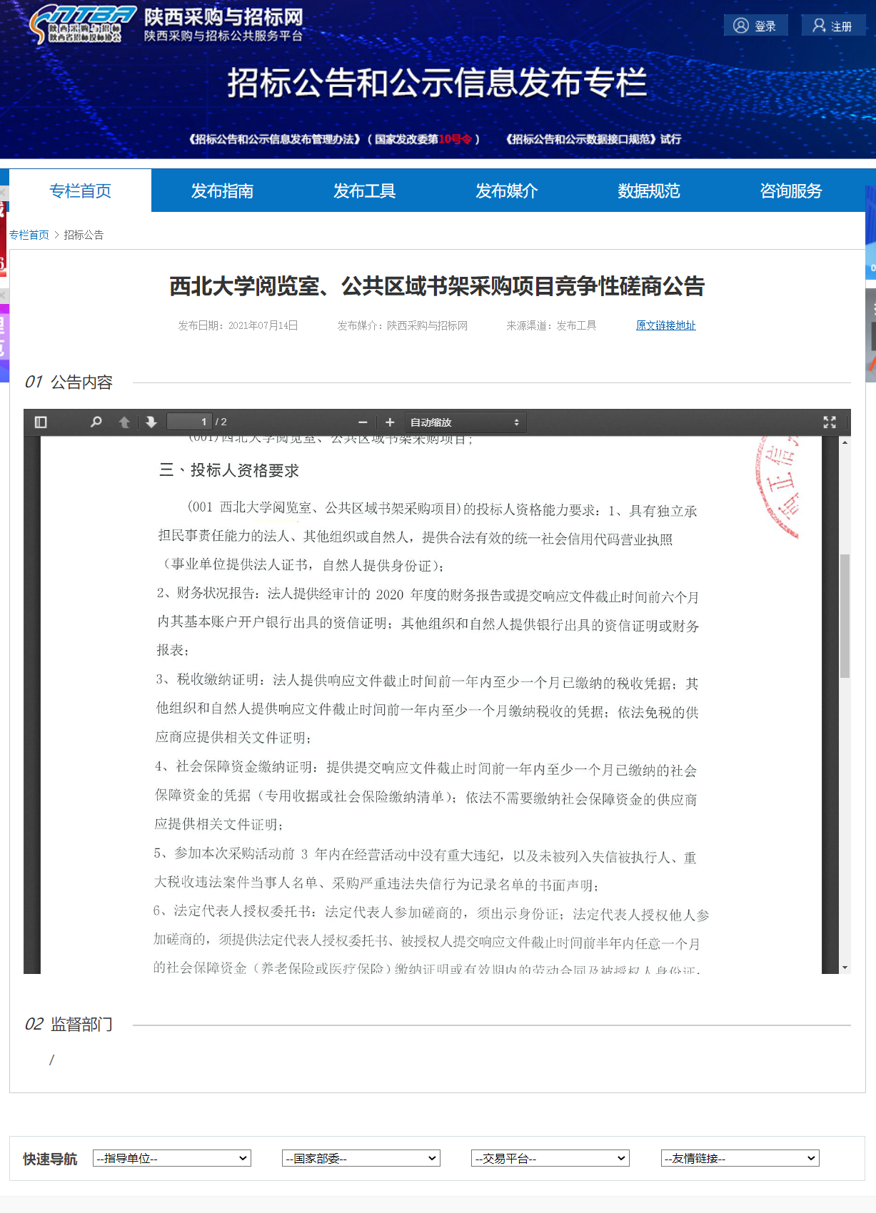 15vip太阳集团官网阅览室、公共区域书架采购项目竞争性磋商公告 作者: 编辑:采购与招标办公室 时间:2021-07-15 原公告地址:http://bulletin.sntba.com/biddingBulletin/2021-07-14/318895.html