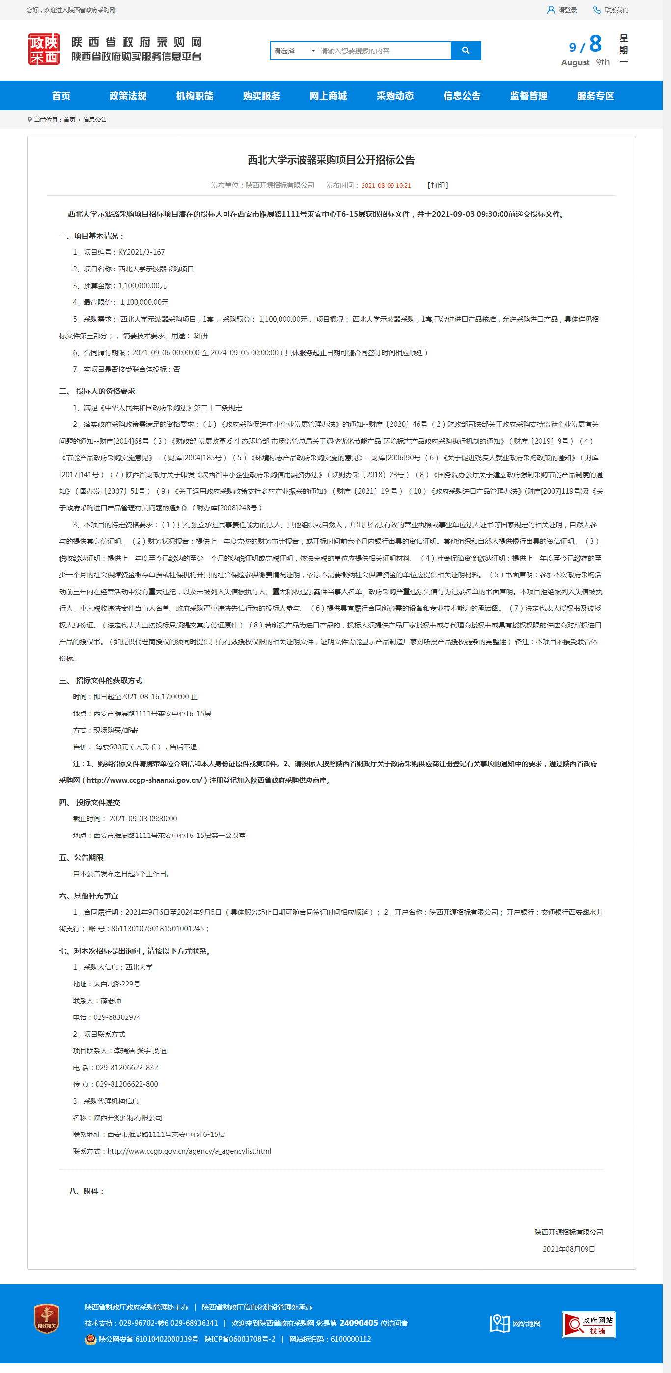 15vip太阳集团官网示波器采购项目公开招标公告 作者: 编辑:采购与招标办公室 时间:2021-08-09 原公告地址:http://www.ccgp-shaanxi.gov.cn/notice/noticeDetail.do?noticeguid=8a85be347b04610d017b28a3aa0f0939