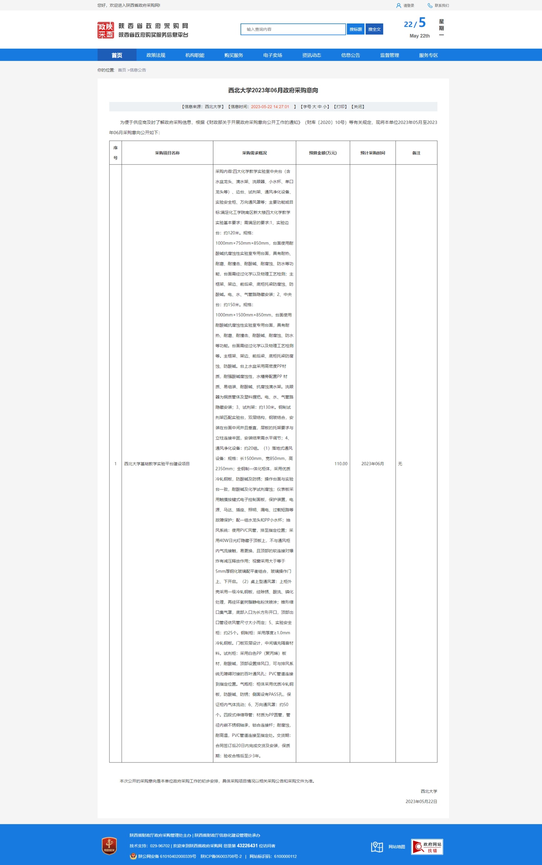 15vip太阳集团官网2023年06月政府采购意向 作者: 编辑:采购与招标办公室 时间:2023-05-22 原公告链接:http://www.ccgp-shaanxi.gov.cn/freecms/site/shaanxi/ggxx/info/2023/8a69c41d882f12320188421df4755e25.html?noticeType=59¬iceId=adc6b8b5-f86a-11ed-9a8e-08c0eb20c666