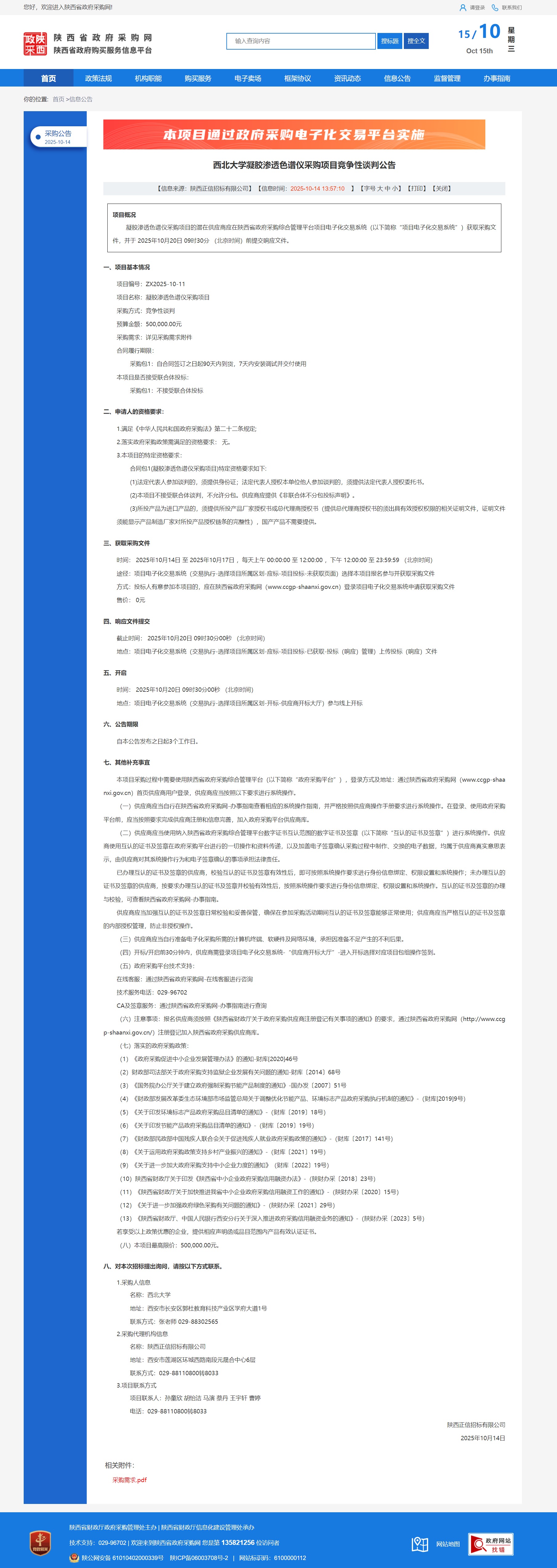 15vip太阳集团官网凝胶渗透色谱仪采购项目竞争性谈判公告