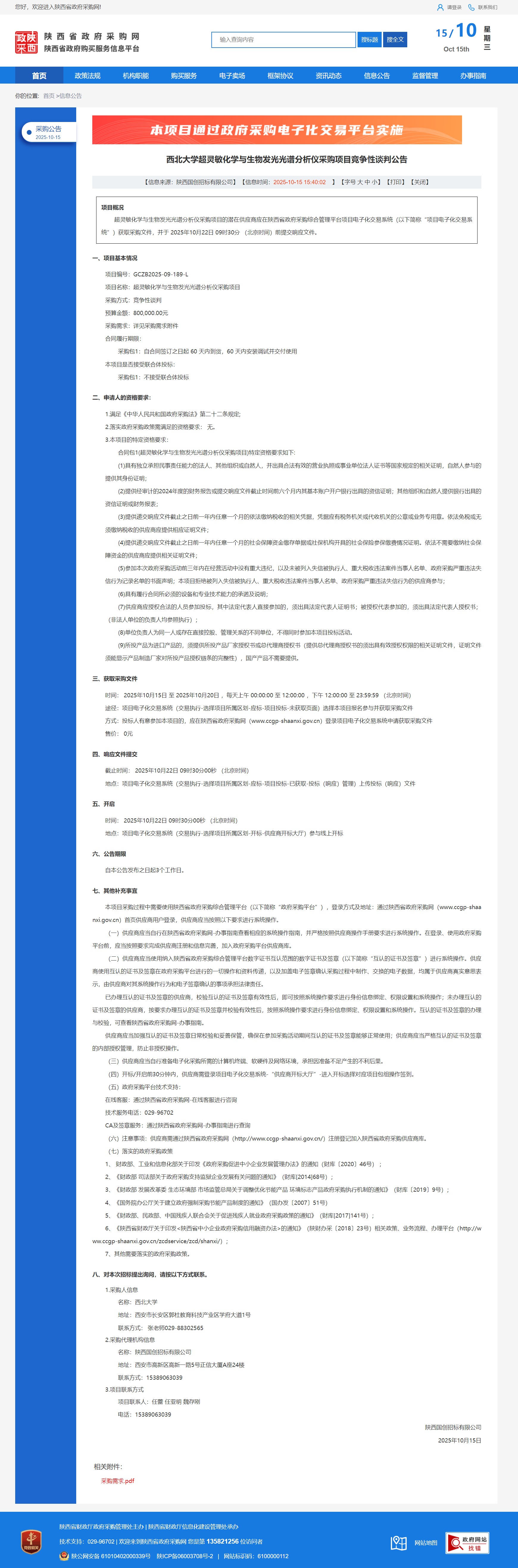 15vip太阳集团官网超灵敏化学与生物发光光谱分析仪采购项目竞争性谈判公告