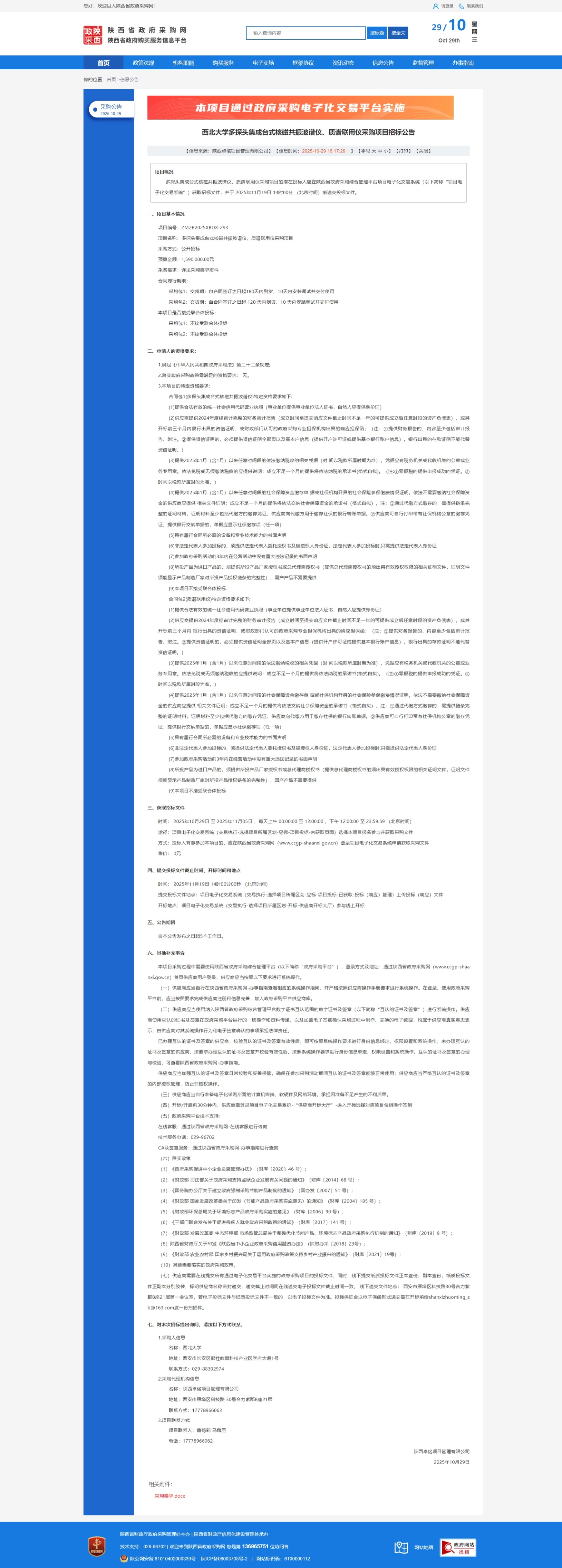 15vip太阳集团官网多探头集成台式核磁共振波谱仪、质谱联用仪采购项目招标公告 作者:国有资产管理处 编辑:国有资产管理处 时间:2025-10-29 原公告链接:https://www.ccgp-shaanxi.gov.cn/freecms/site/shaanxi/ggxx/info/2025/8a69c54f99f77a8f019a2efec46e4a64.html?noticeType=001011¬iceId=e7208489-b4a1-11f0-8063-08c0eb20c666