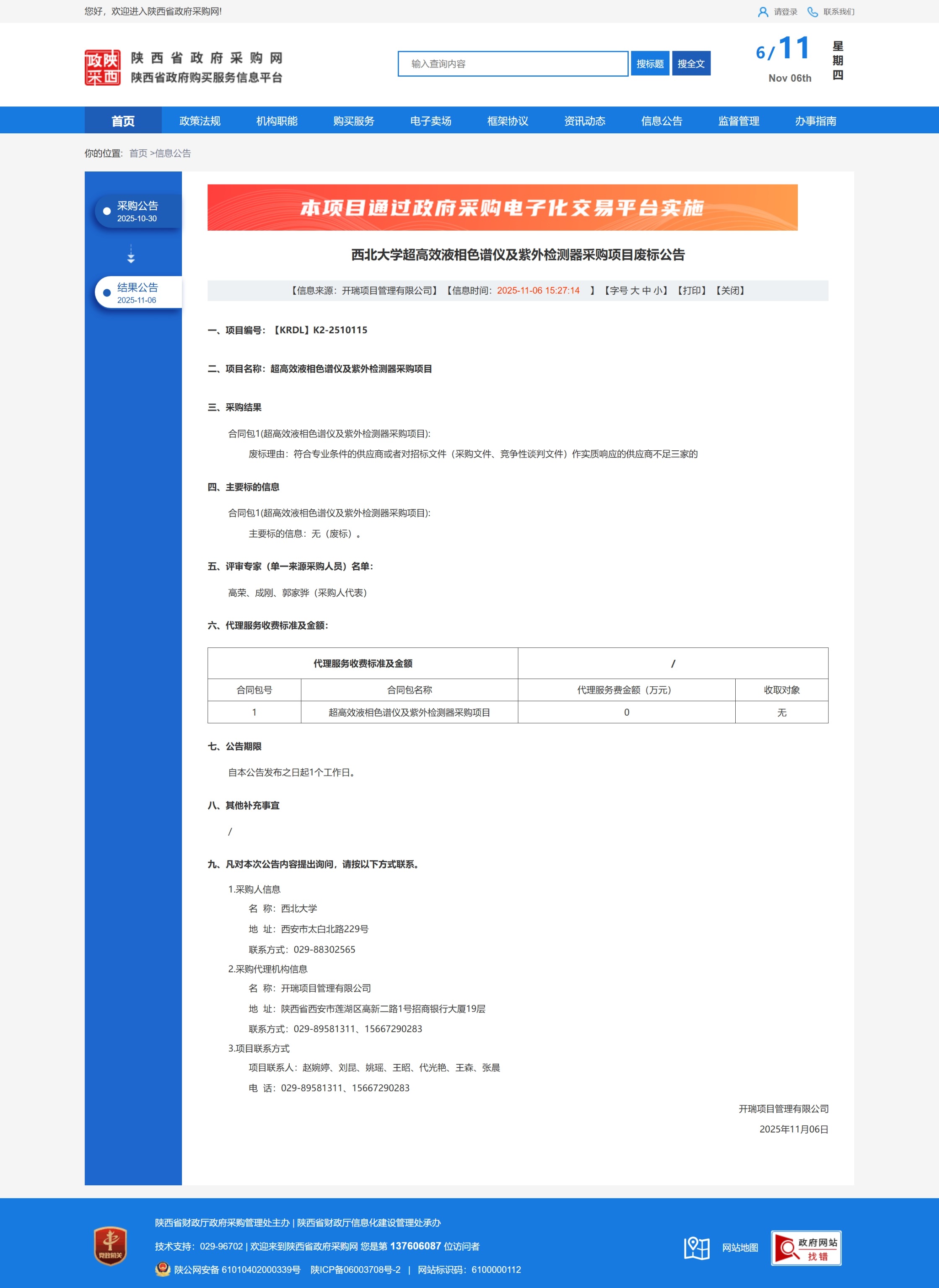 15vip太阳集团官网超高效液相色谱仪及紫外检测器采购项目废标公告 作者: 编辑:国有资产管理处 时间:2025-11-06 原公告链接:https://www.ccgp-shaanxi.gov.cn/freecms/site/shaanxi/ggxx/info/2025/8a69c6c799f7737f019a5806d9fe1d4e.html?noticeType=001006¬iceId=3938e233-bae4-11f0-8063-08c0eb20c666