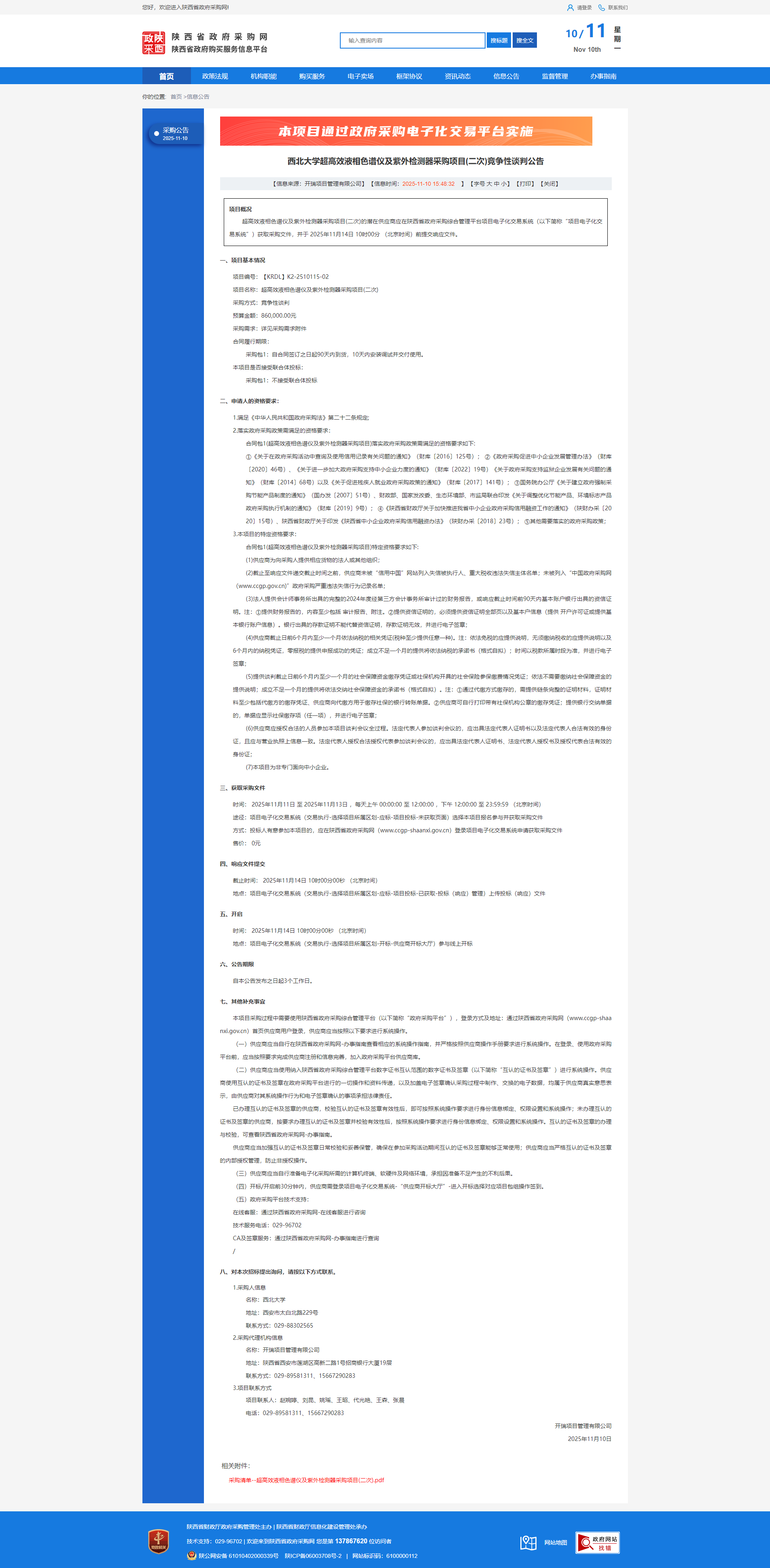 15vip太阳集团官网超高效液相色谱仪及紫外检测器采购项目(二次)竞争性谈判公告