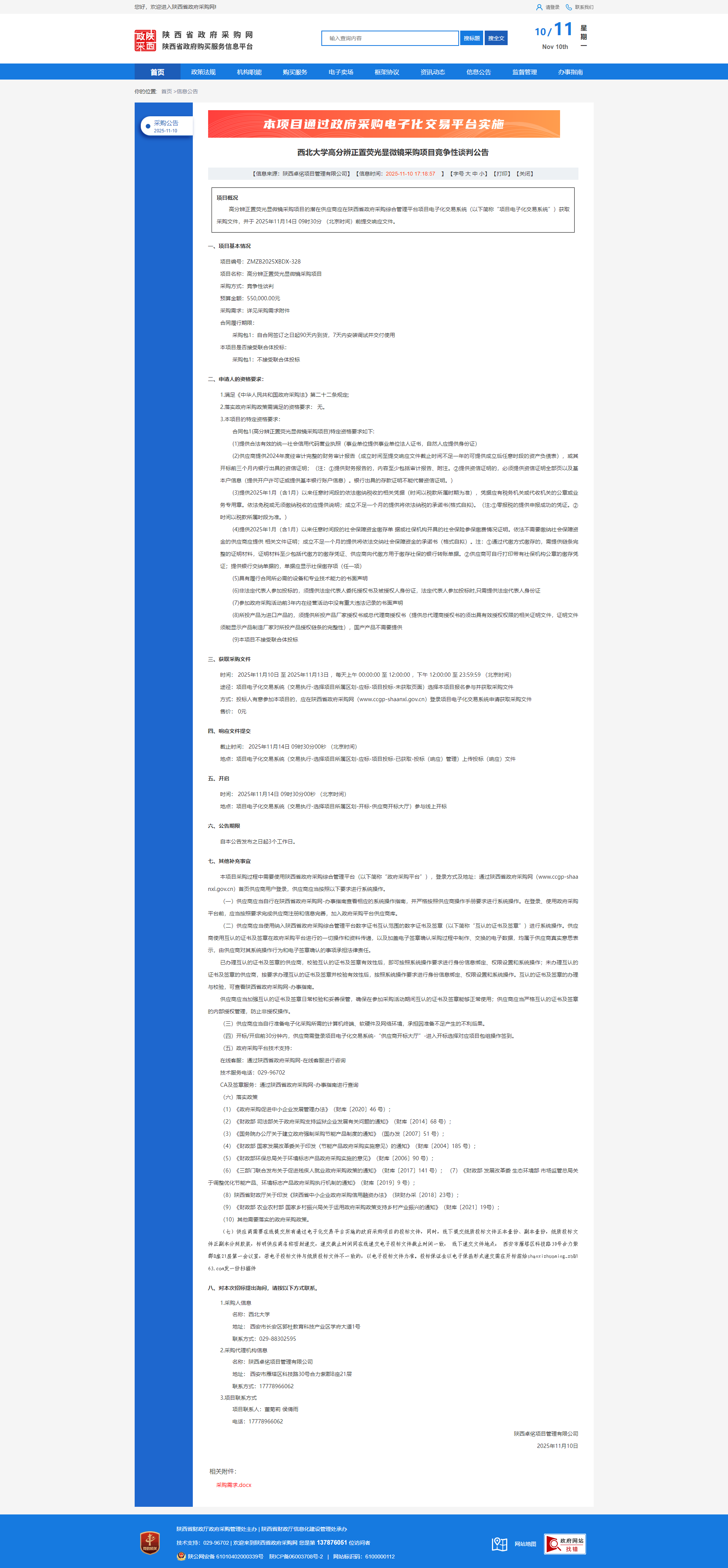 15vip太阳集团官网高分辨正置荧光显微镜采购项目竞争性谈判公告