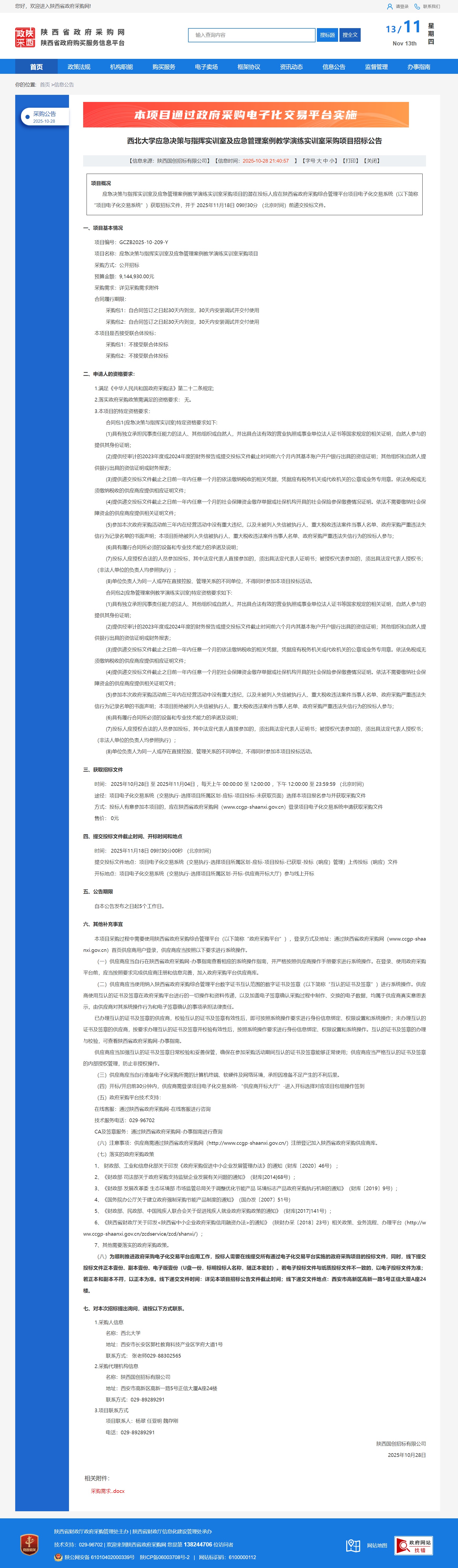 15vip太阳集团官网应急决策与指挥实训室及应急管理案例教学演练实训室采购项目招标公告