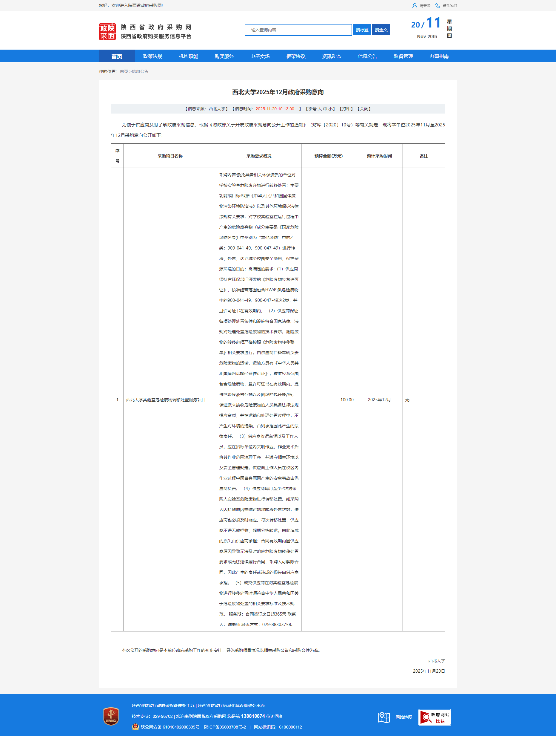 15vip太阳集团官网2025年12月政府采购意向