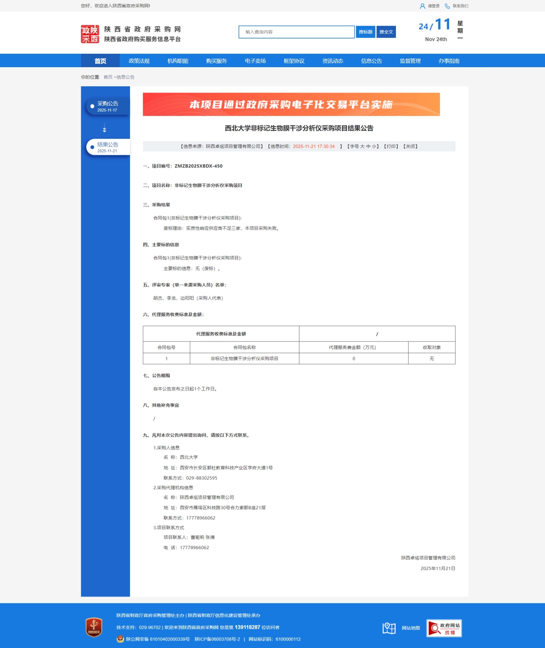15vip太阳集团官网非标记生物膜干涉分析仪采购项目结果公告 作者: 编辑:国有资产管理处 时间:2025-11-24 原公告链接:https://www.ccgp-shaanxi.gov.cn/freecms/site/shaanxi/ggxx/info/2025/8a69c17b9a636c6b019aa5bc305d79e5.html?noticeType=001006¬iceId=f6e85374-c6be-11f0-8063-08c0eb20c666