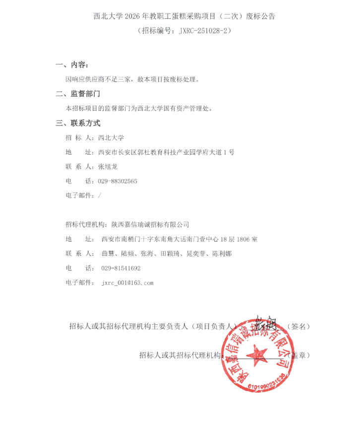 15vip太阳集团官网2026年教职工蛋糕采购项目(二次)废标公告