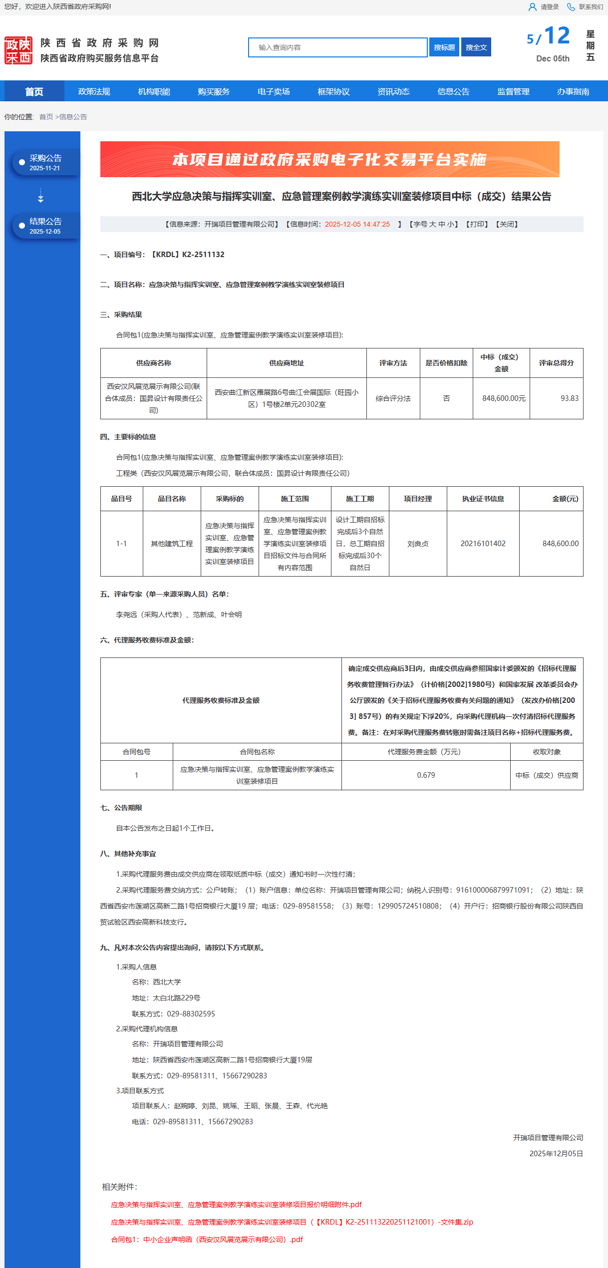15vip太阳集团官网应急决策与指挥实训室、应急管理案例教学演练实训室装修项目中标(成交)结果公告