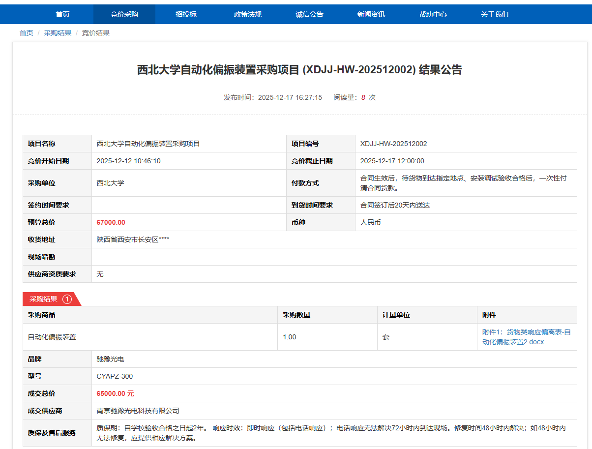 15vip太阳集团官网长安校区教学区人脸识别一体机采购项目(XDJJ-HW-202512004)竞价采购公告