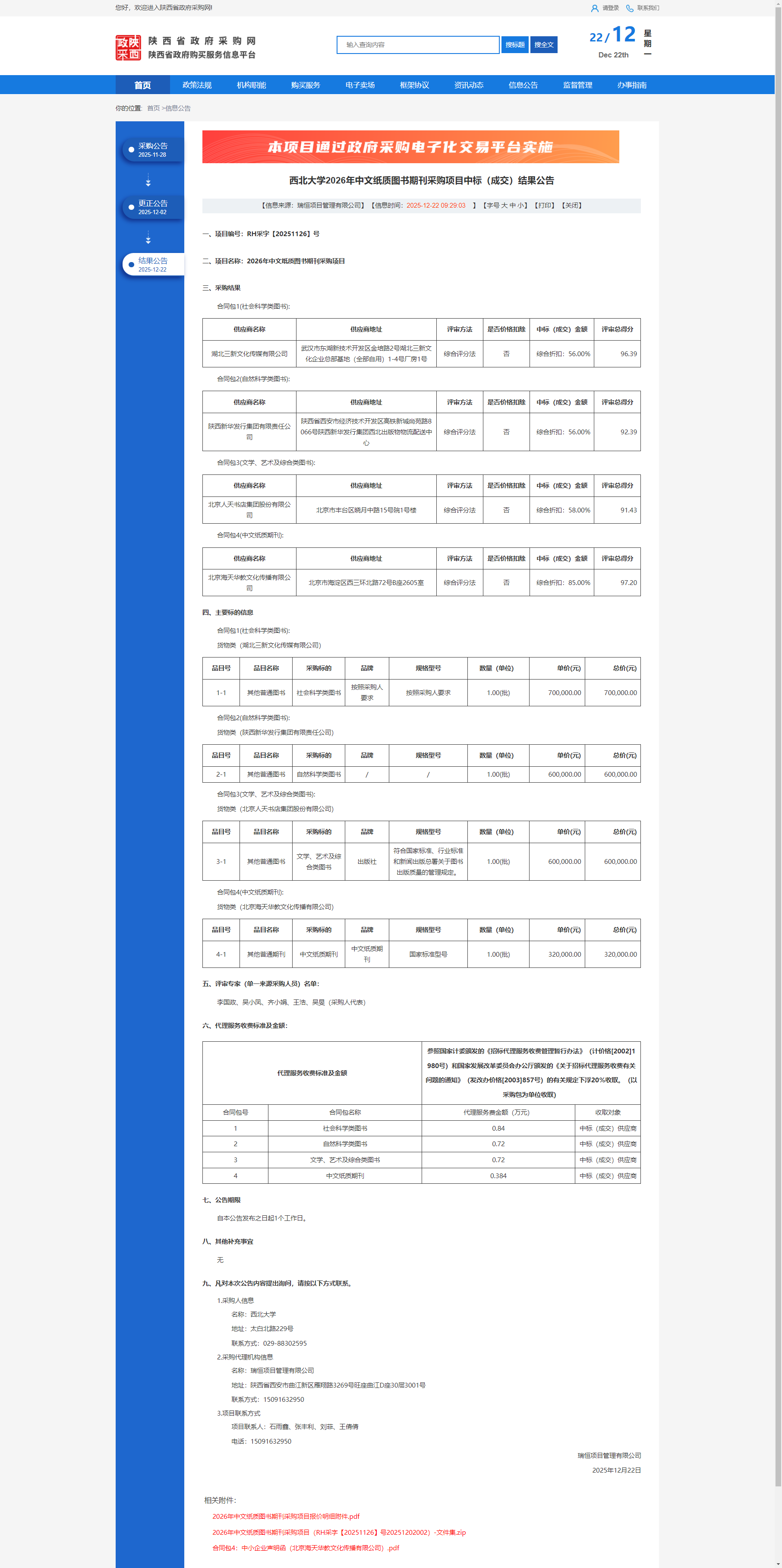 15vip太阳集团官网2026年中文纸质图书期刊采购项目中标(成交)结果公告