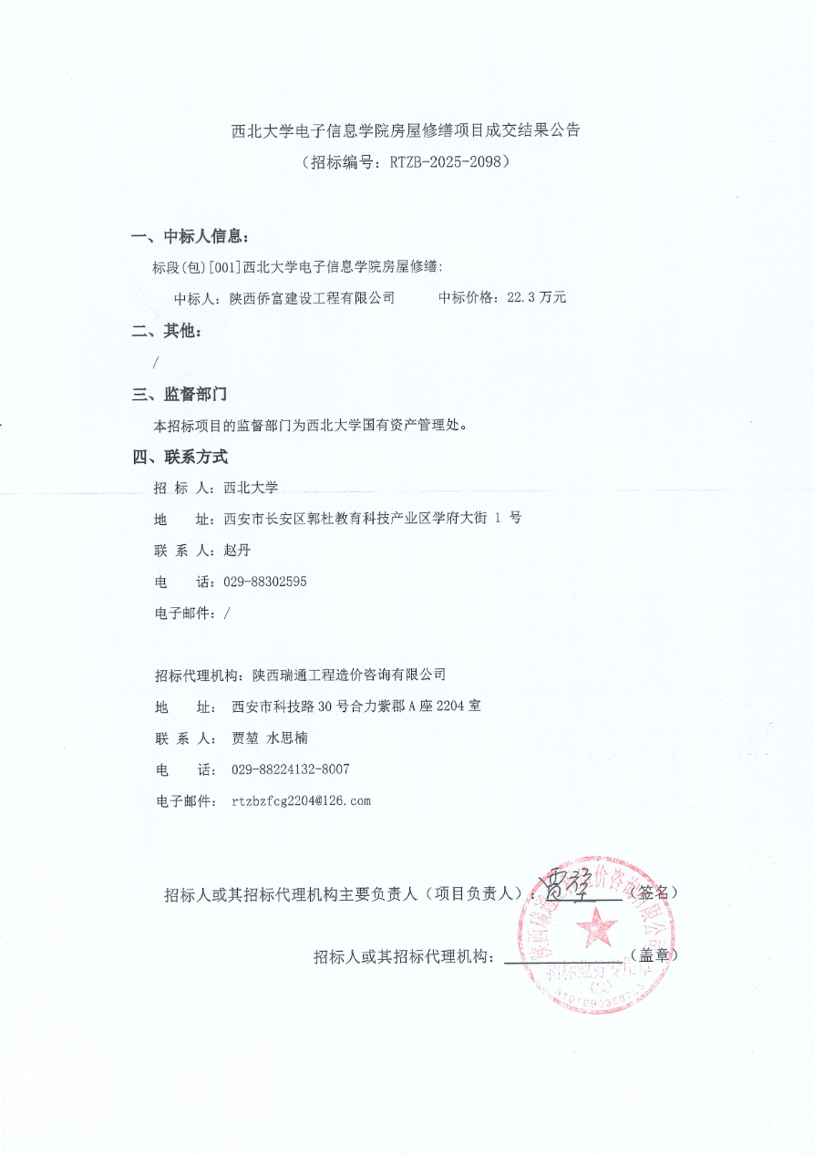 15vip太阳集团官网电子信息学院房屋修缮项目成交结果公告