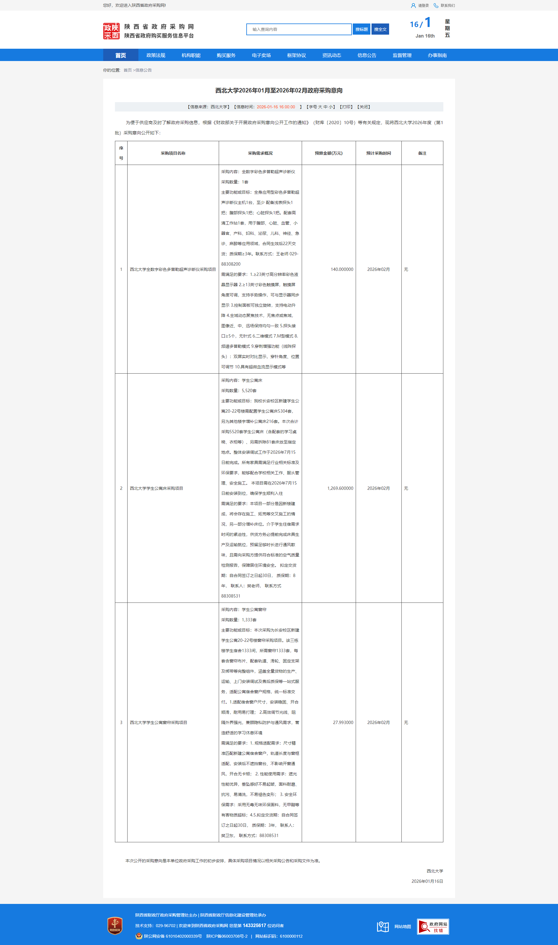 15vip太阳集团官网2026年01月至2026年02月政府采购意向